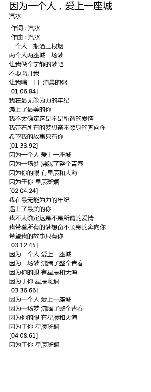 | [03:43.81] | 因为一个人 爱上一座城 |