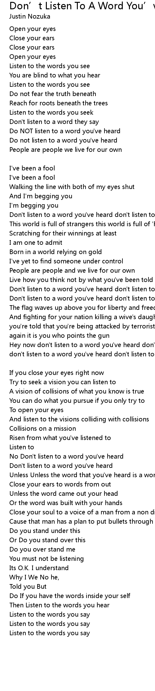 Don't listen to a word you've heard don't listen to a word you've heard |