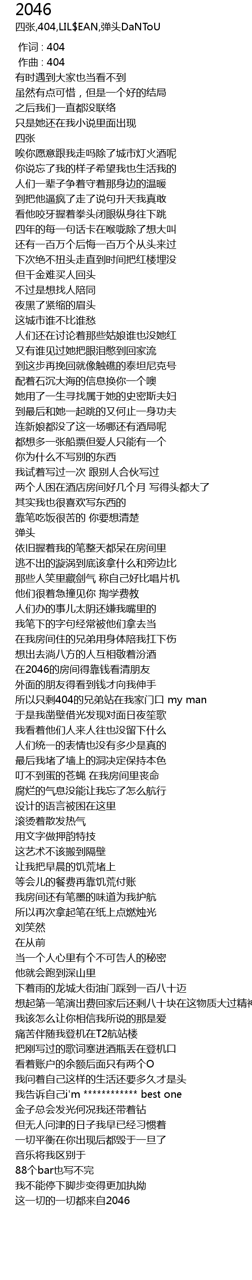 | [00:00.000] | 作词 : 404 |