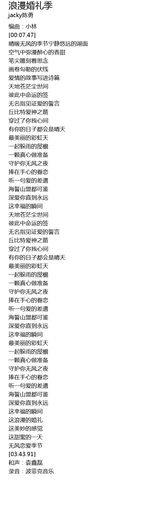 | [03:26.41] | zhè làng màn de hūn lǐ |