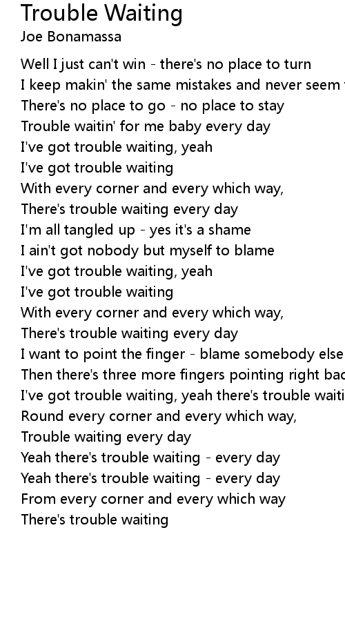 | I've got trouble waiting, yeah there's trouble waiting ‘ | |