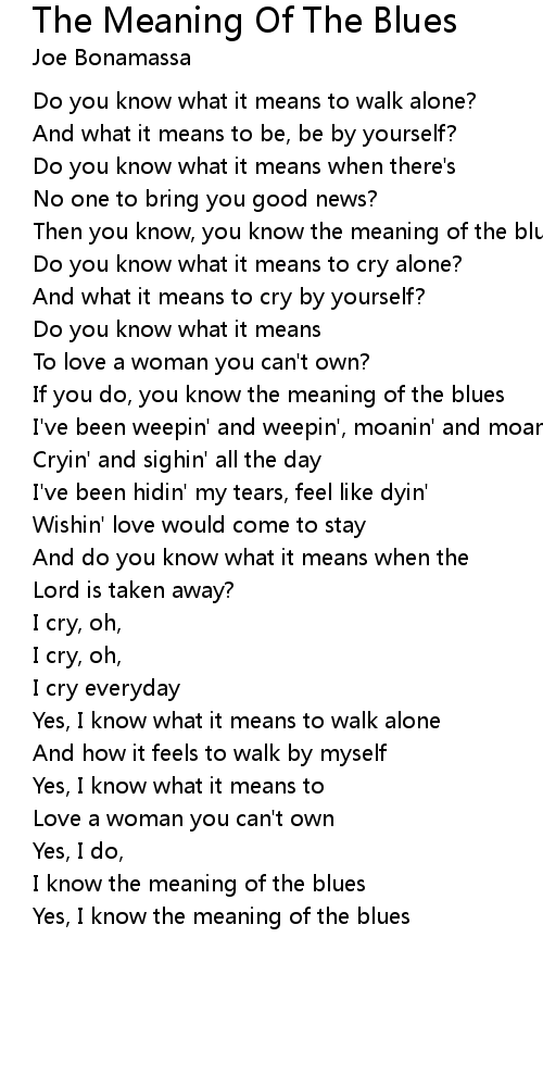 Then you know, you know the meaning of the blues |