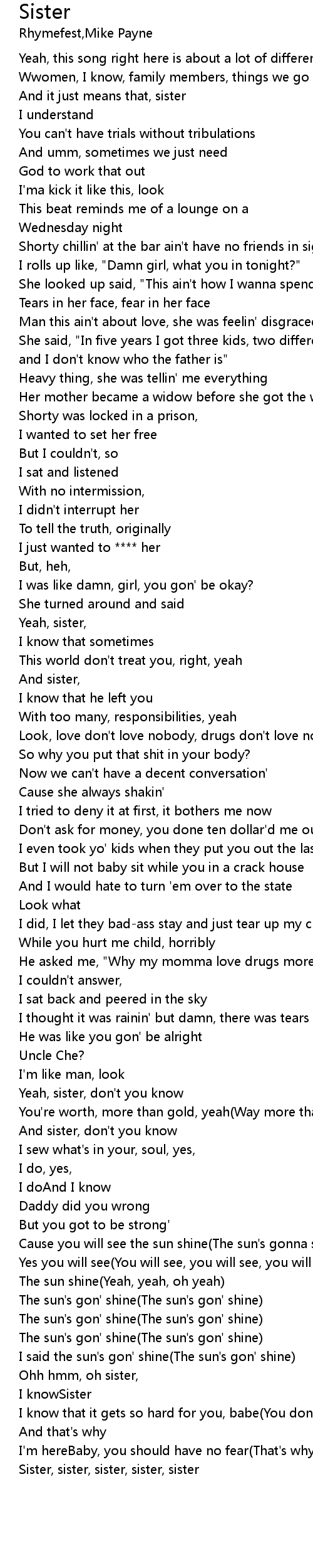 Ohh hmm, oh sister, |