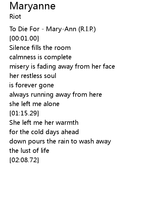 | [00:00.00] | To Die For - Mary-Ann (R.I.P.) |