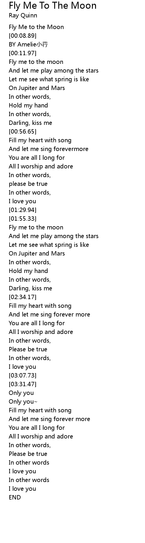 | [02:02.56] | Fly me to the moon |
