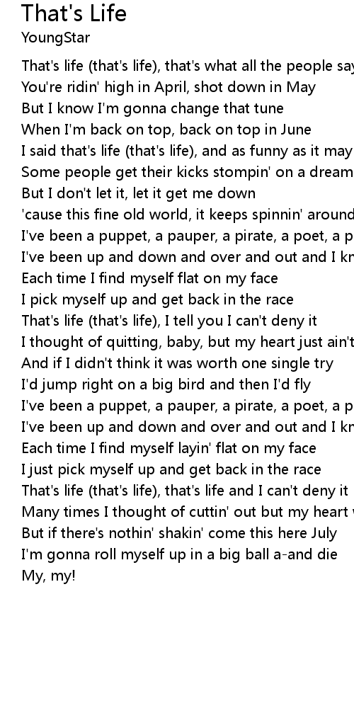 | I've been a puppet, a pauper, a pirate, a poet, a pawn and a king | |