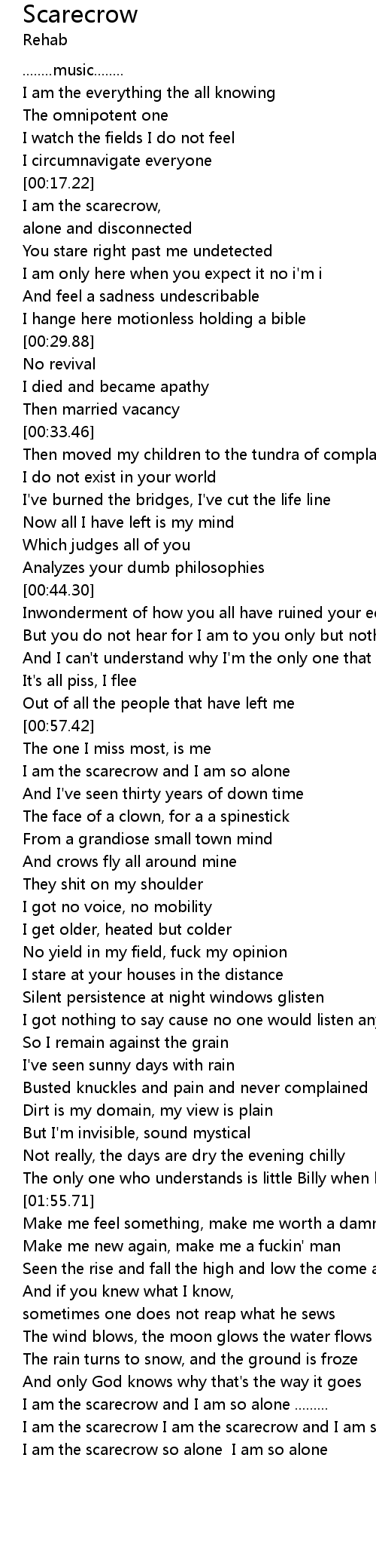 I am the scarecrow I am the scarecrow and I am so alone |
