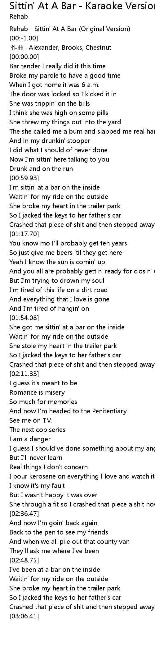 | [00:-2.00] | Rehab Sittin' At A Bar Original Version |