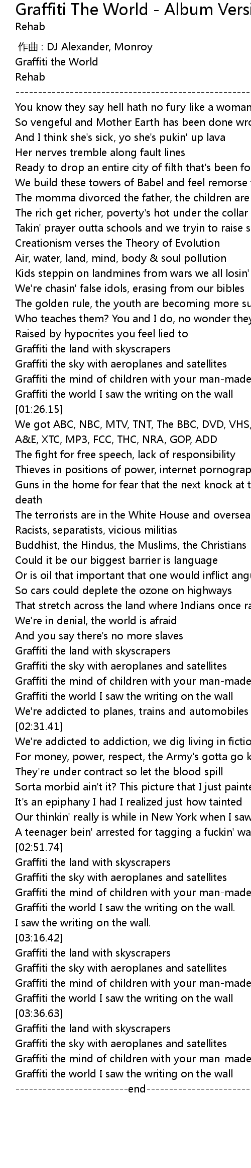 | [03:32.43] | Graffiti the world I saw the writing on the wall |