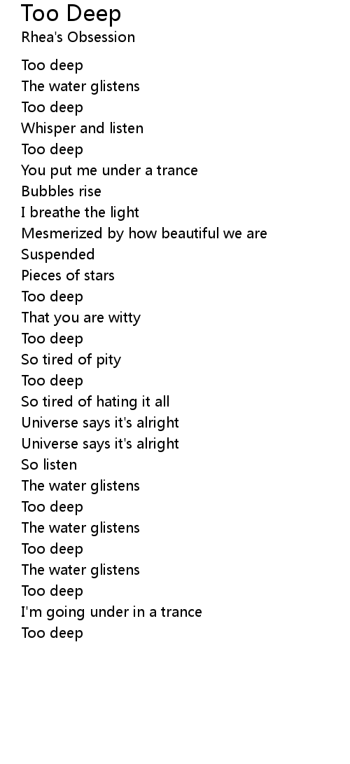 | Song | Too Deep |
