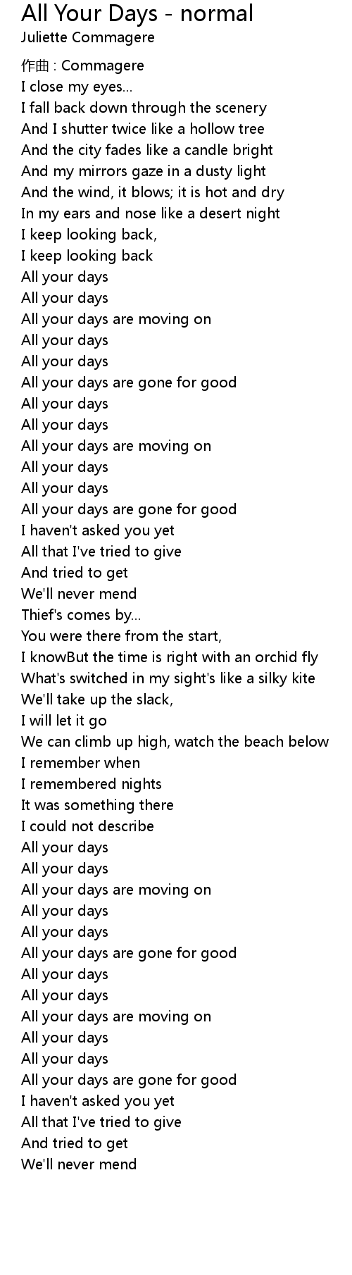 | Song | All Your Days - normal |