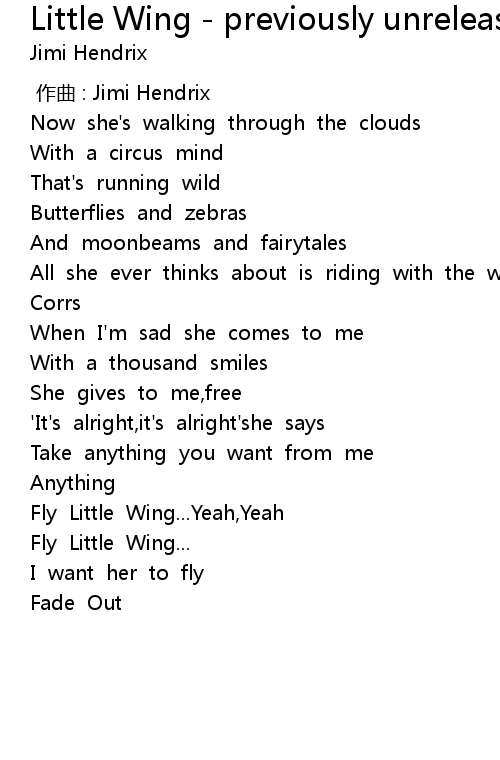 | [01:44.64] | Fly Little Wing...Yeah,Yeah |