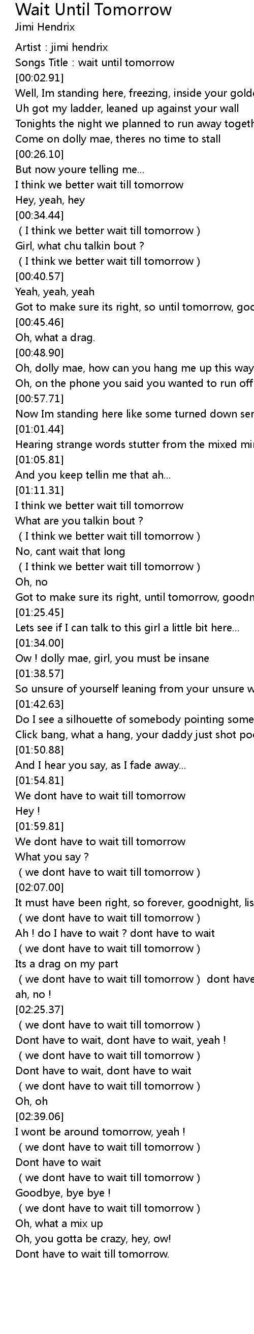 | [02:43.99] | (we dont have to wait till tomorrow) |