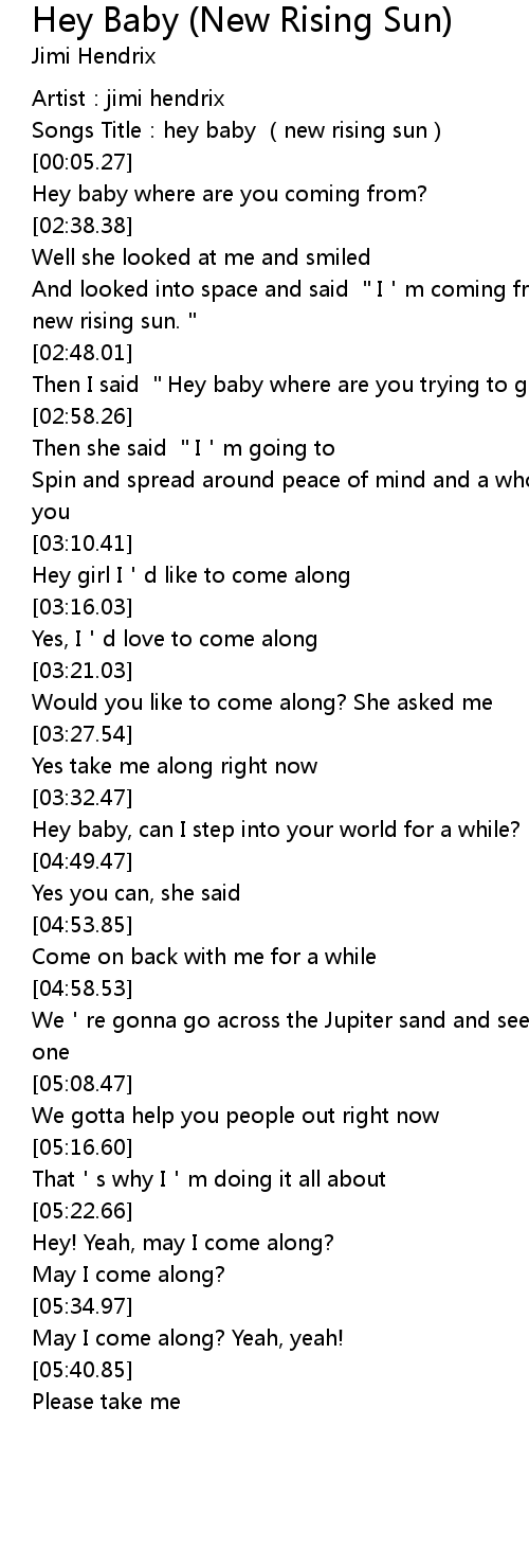 | [00:02.33] | Songs Title: hey baby new rising sun |
