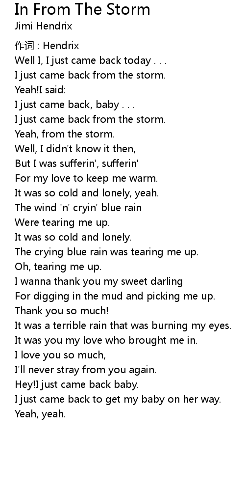 | Song | In From The Storm |
