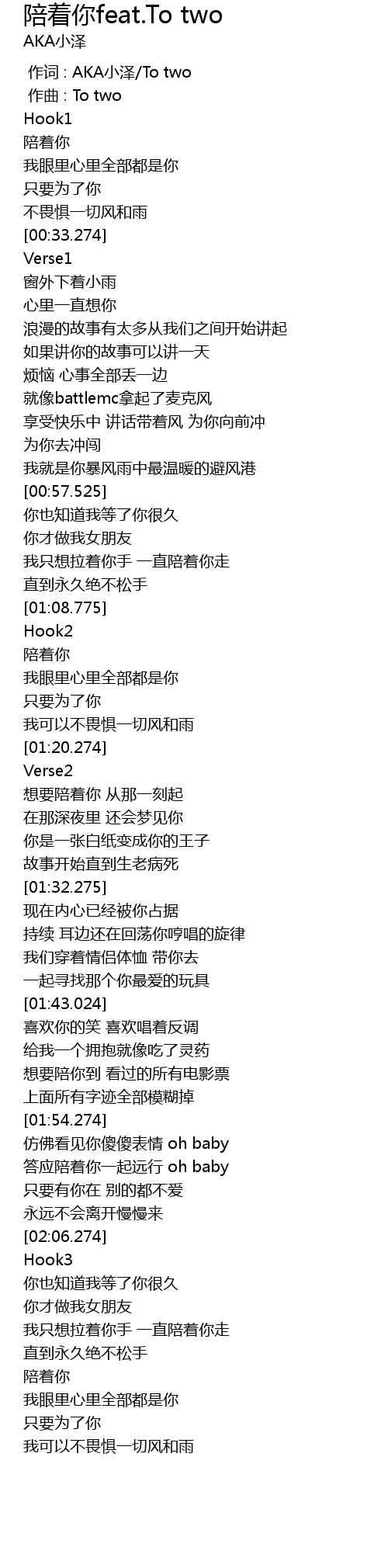 | [00:00.000] | zuò cí : AKA xiǎo zé To two |