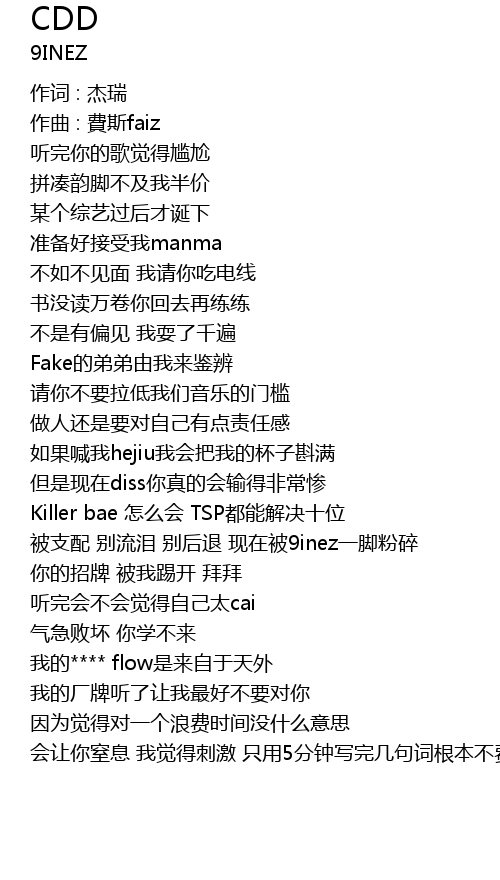 | 会让你窒息 我觉得刺激 只用5分钟写完几句词根本不费力 |