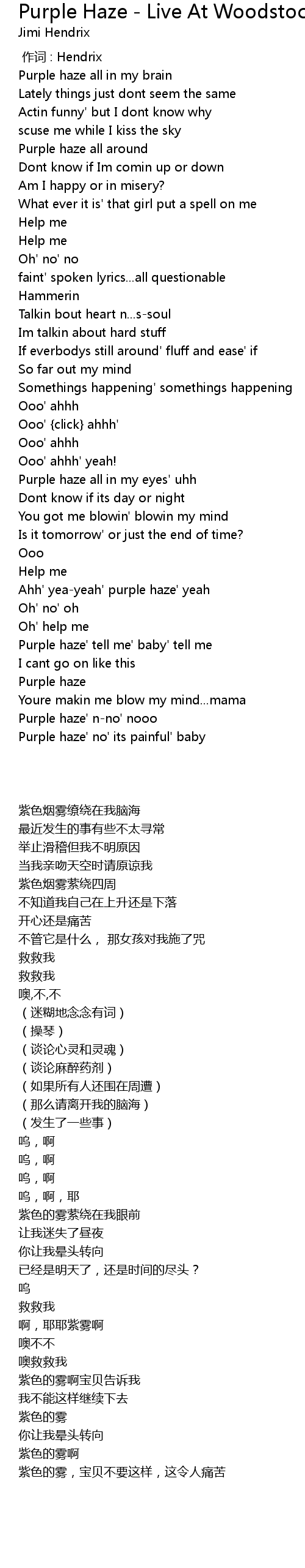 | [02:18.14] | Ahh' yeayeah' purple haze' yeah |
