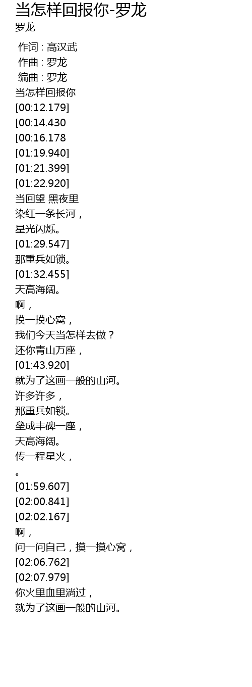 | [00:07.931] | 当怎样回报你 |