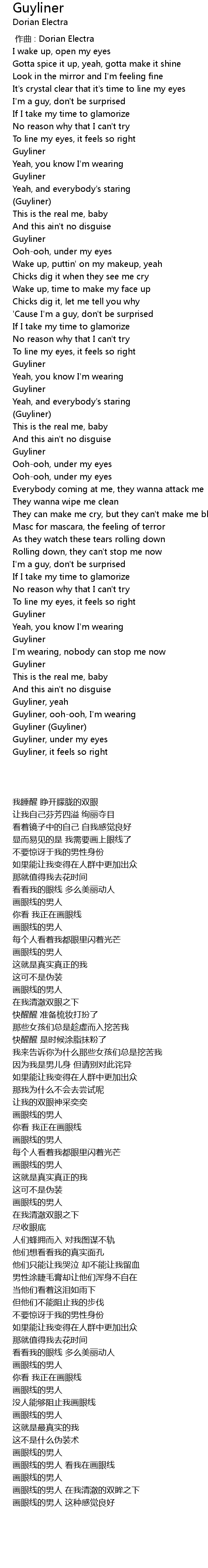 | [02:38.942] | Guyliner, ooh-ooh, I'm wearing |