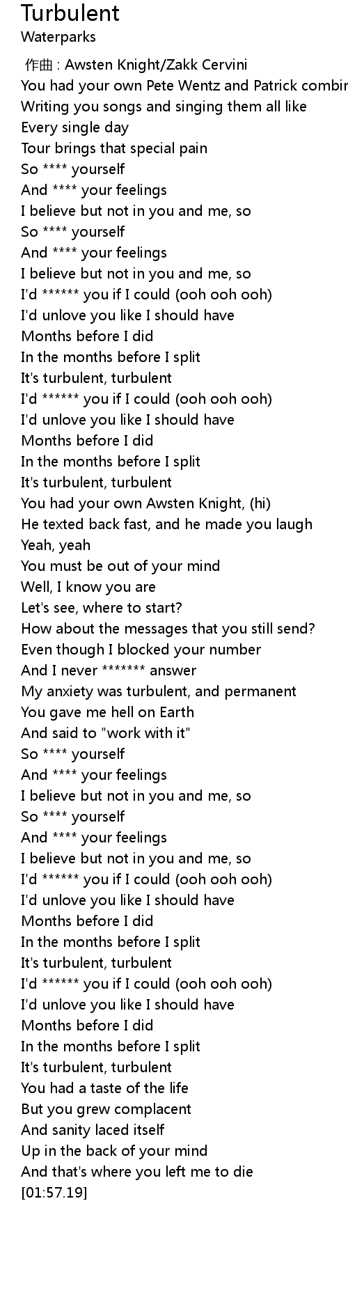 | [00:38.88] | I'd ****** you if I could (ooh ooh ooh) |