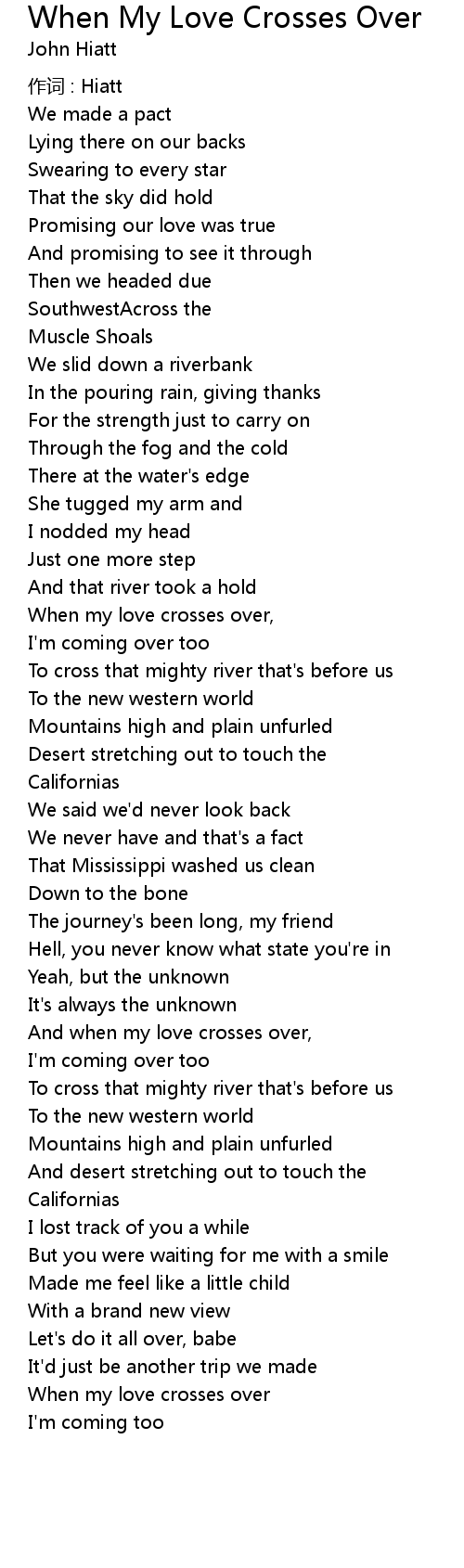 | And when my love crosses over, | |