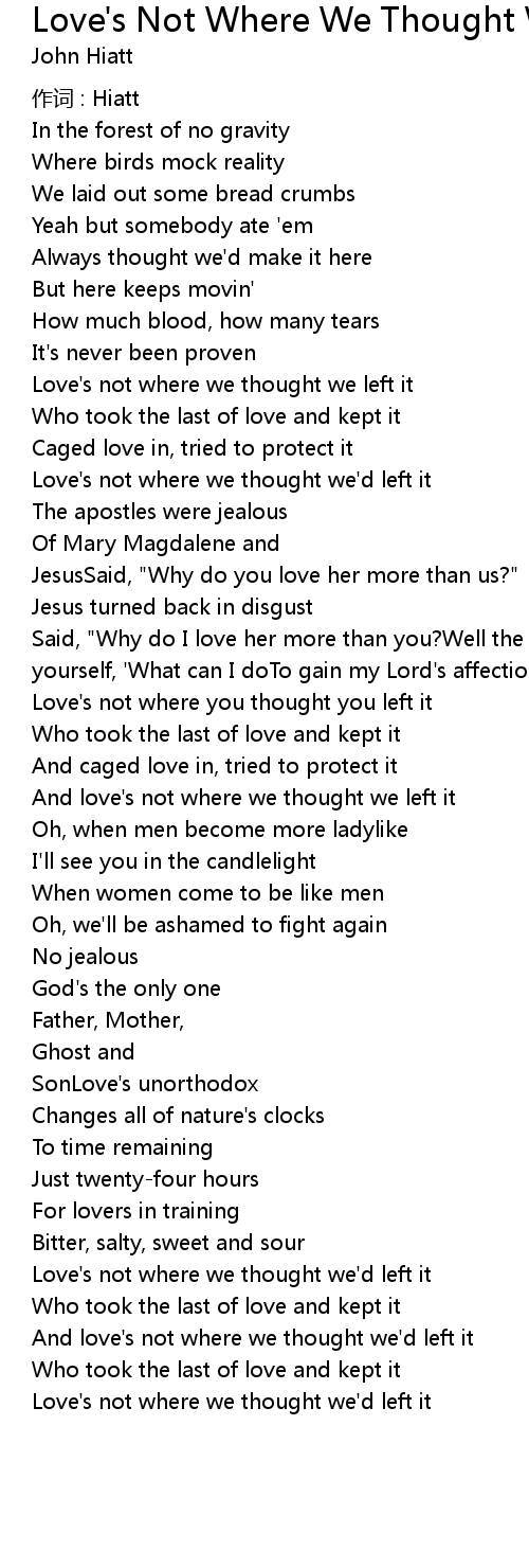 | Love' s not where you thought you left it | |