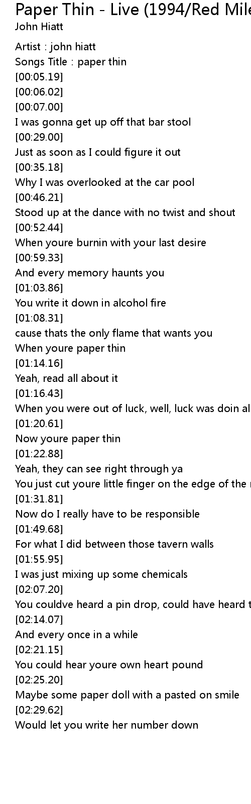 | Song | Paper Thin - Live (1994/Red Mile Racetrack, Lexington, KY) |