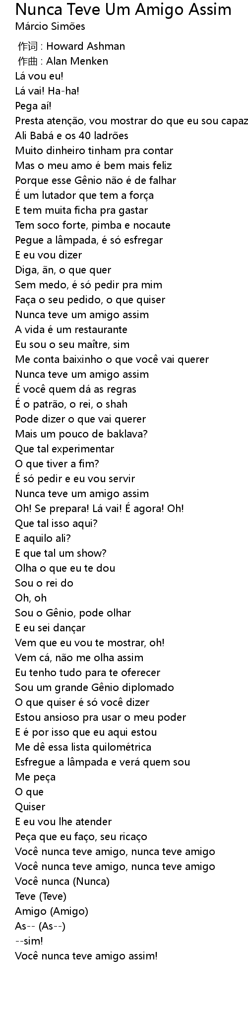 | [02:10.34] | Voc nunca teve amigo, nunca teve amigo |