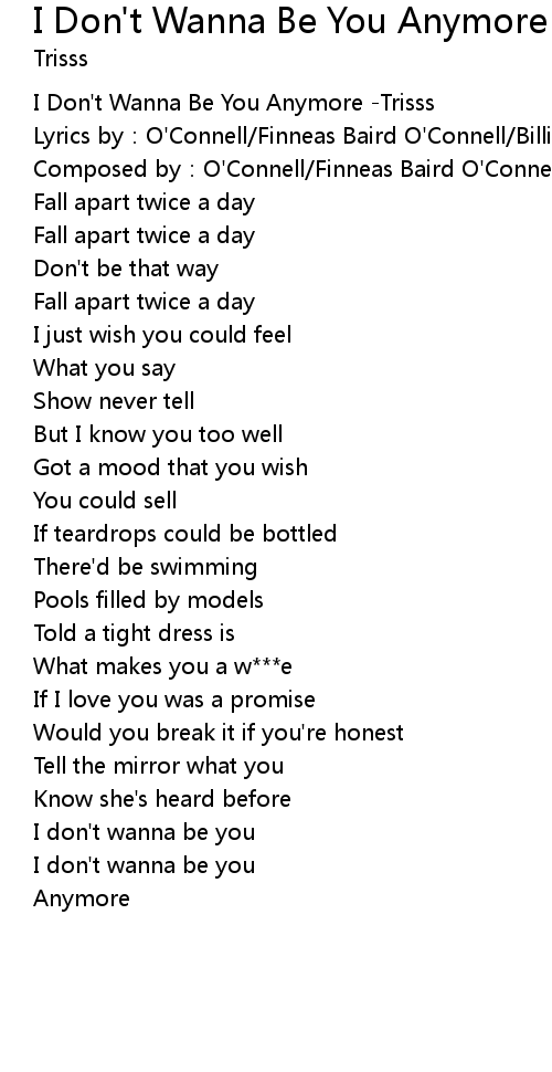 | [00:00.917] | I Don' t Wanna Be You Anymore Trisss |