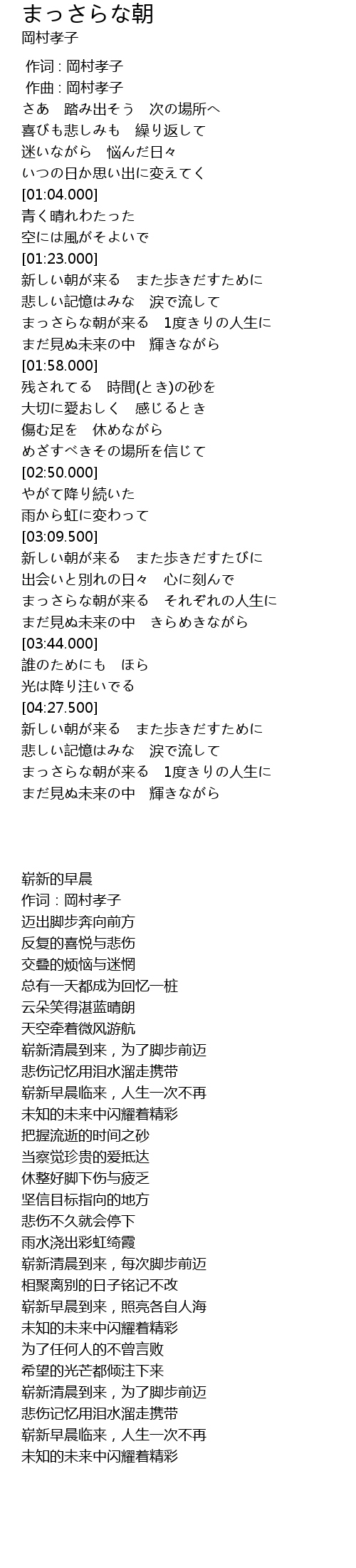 | [01:24.000] | 新しい朝が来る また歩きだすために |