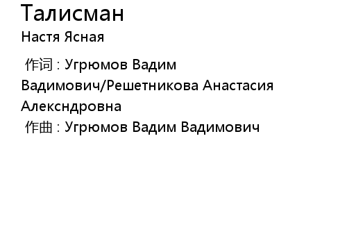 | [00:00.000] | 作词 : Угрюмов Вадим Вадимович/Решетникова Анастасия Алексндровна |