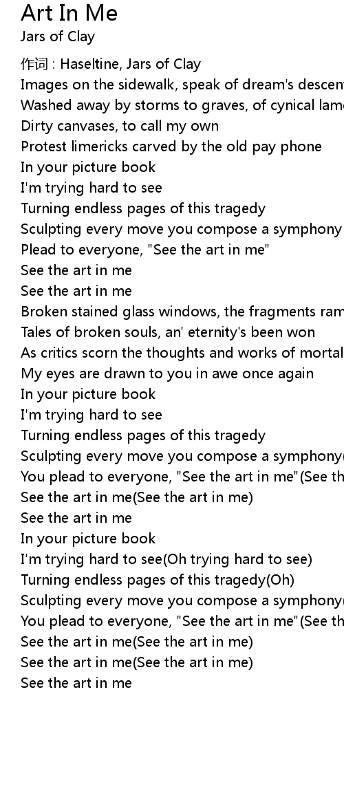 | You plead to everyone, "See the art in me"(See the art in me) | |