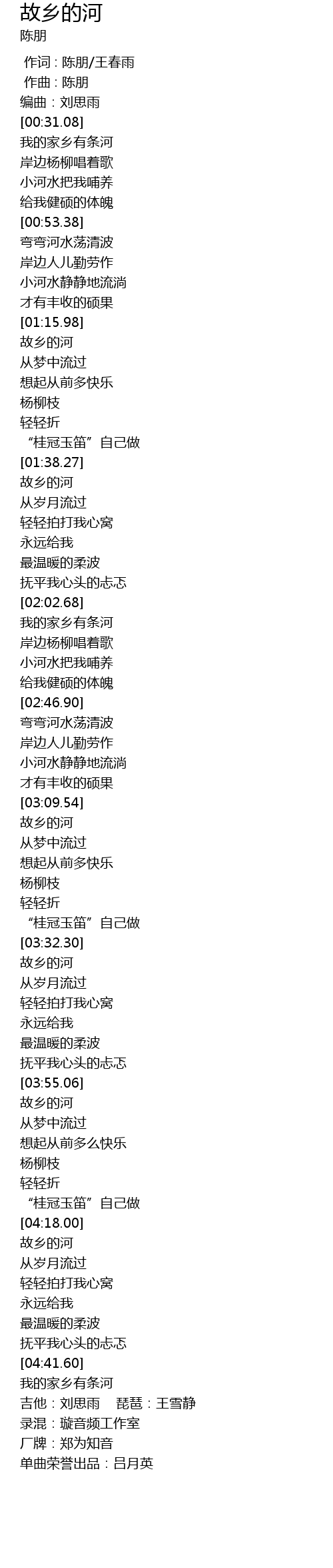 | [00:31.29] | wǒ de jiā xiāng yǒu tiáo hé |