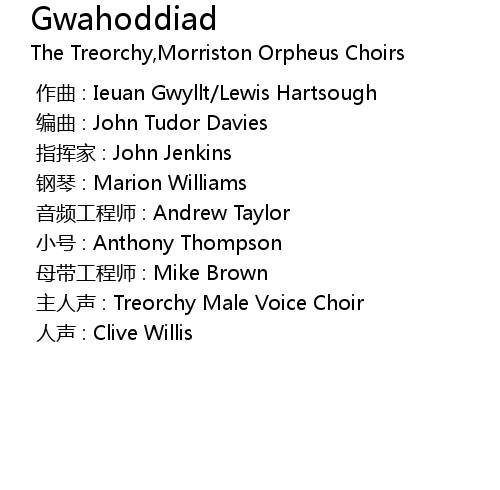 | [00:00.000] | 主人声 : Treorchy Male Voice Choir |