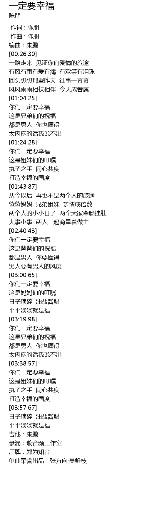 | [02:42.30] | nǐ men yí dìng yào xìng fú |
