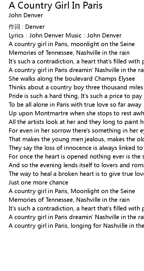 | Song | A Country Girl In Paris |