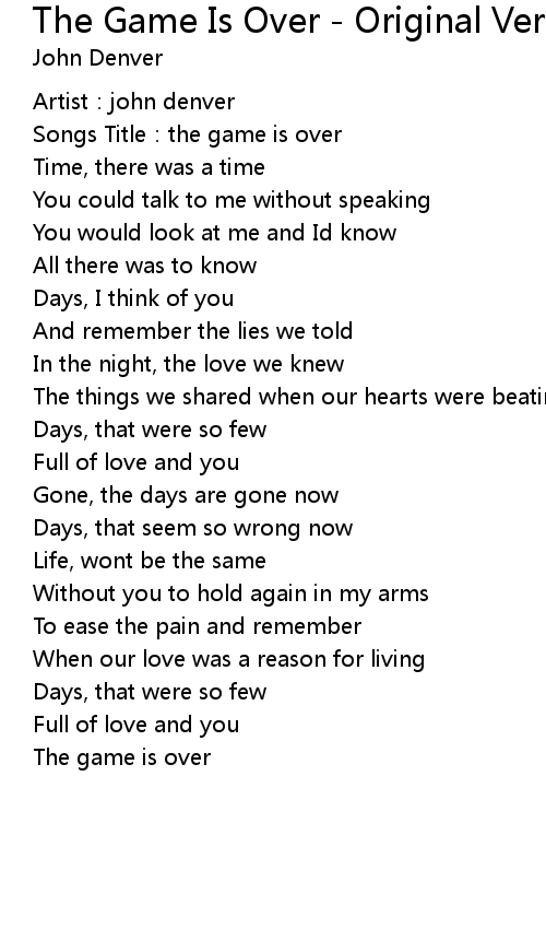 | Song | The Game Is Over - Original Version |