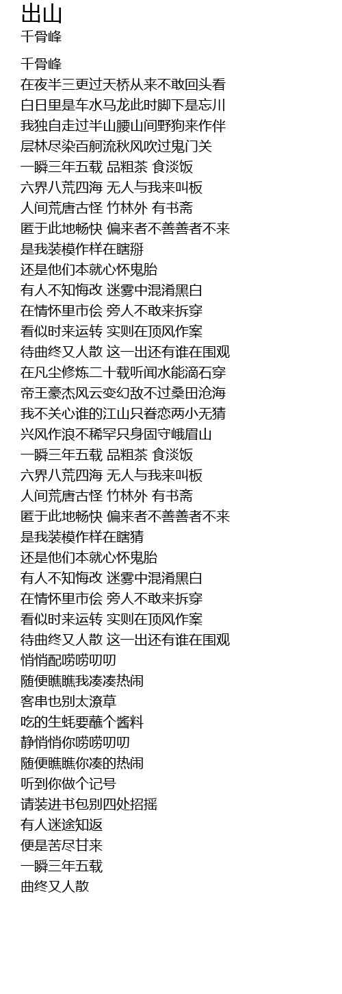 | [01:16.86] | 在凡尘修炼二十载听闻水能滴石穿 |