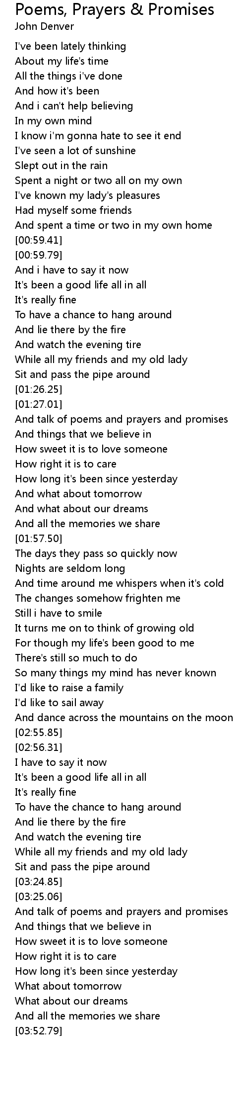 And talk of poems and prayers and promises |