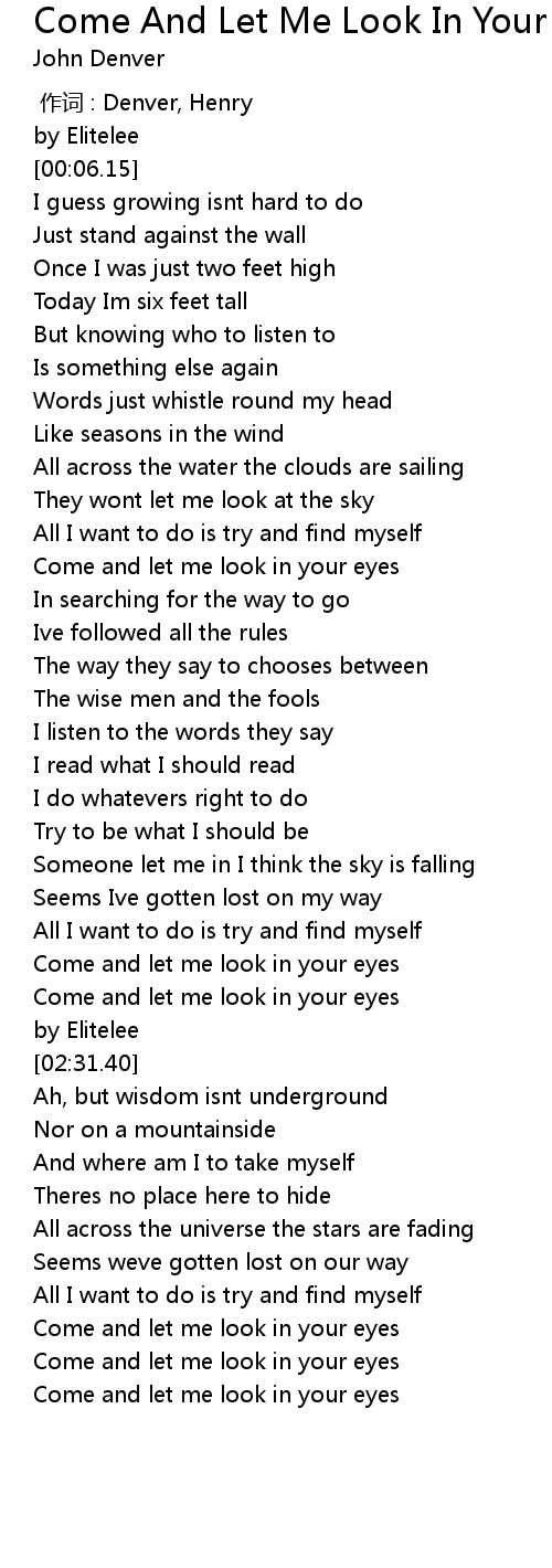 | [01:56.98] | Someone let me in I think the sky is falling |