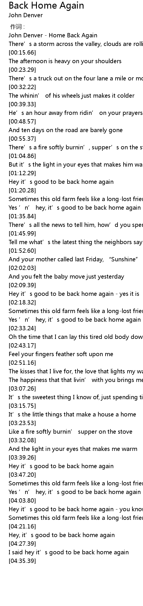| [00:03.64] | John Denver Home Back Again |