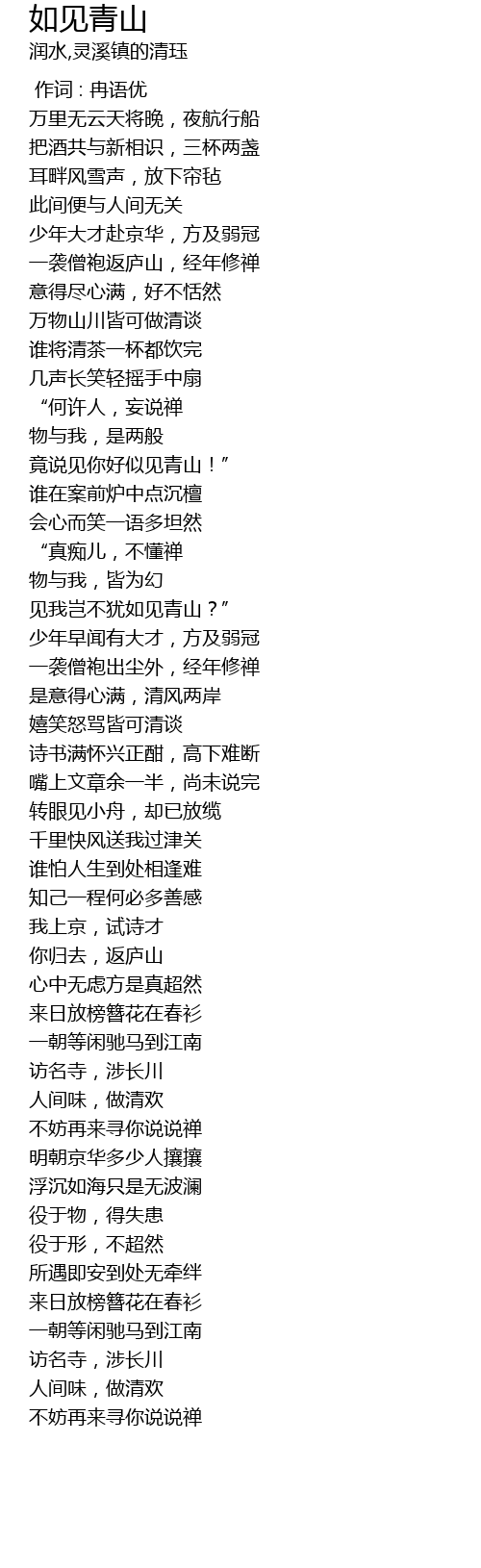 | [00:38.122] | yi xi seng pao fan lu shan, jing nian xiu chan |