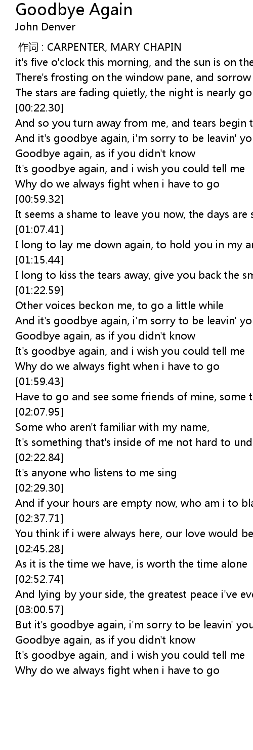 | [00:45.59] | It's goodbye again, and i wish you could tell me |