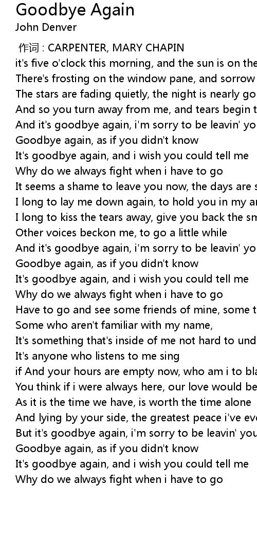| [00:45.78] | It's goodbye again, and i wish you could tell me |