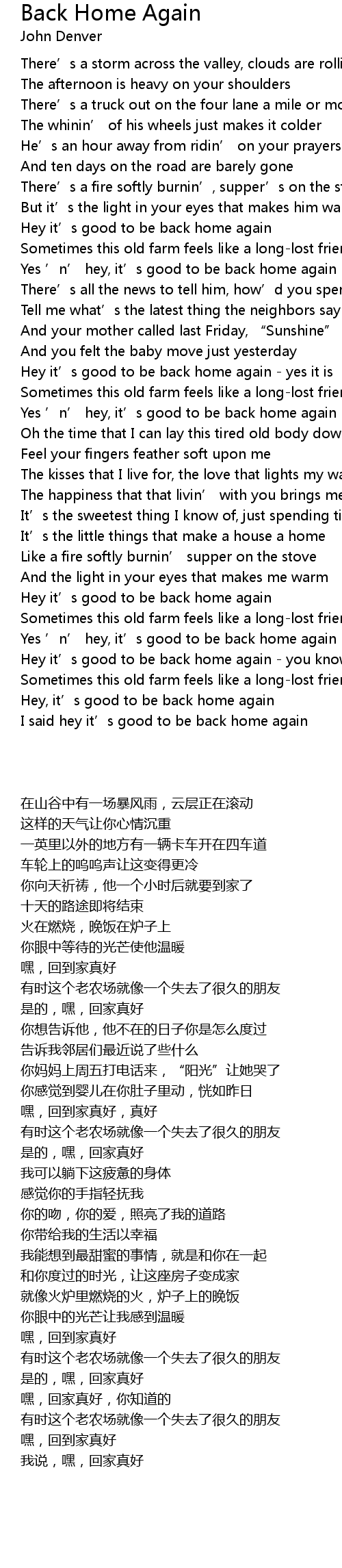 | [02:24.11] | Yes ' n' hey, it' s good to be back home again |