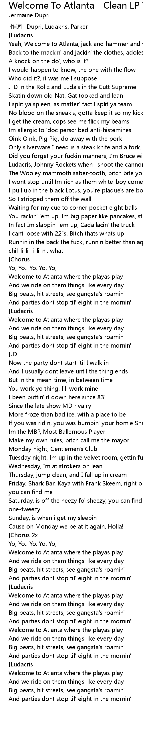 | Song | Welcome To Atlanta - Clean LP Version |