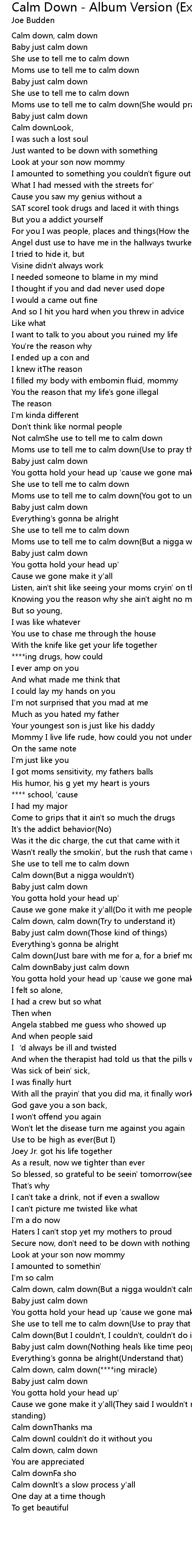 | Moms use to tell me to calm down(You got to understand what I was going through) | |