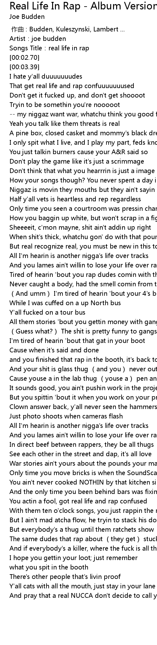 | [00:00.90] | Artist: joe budden |