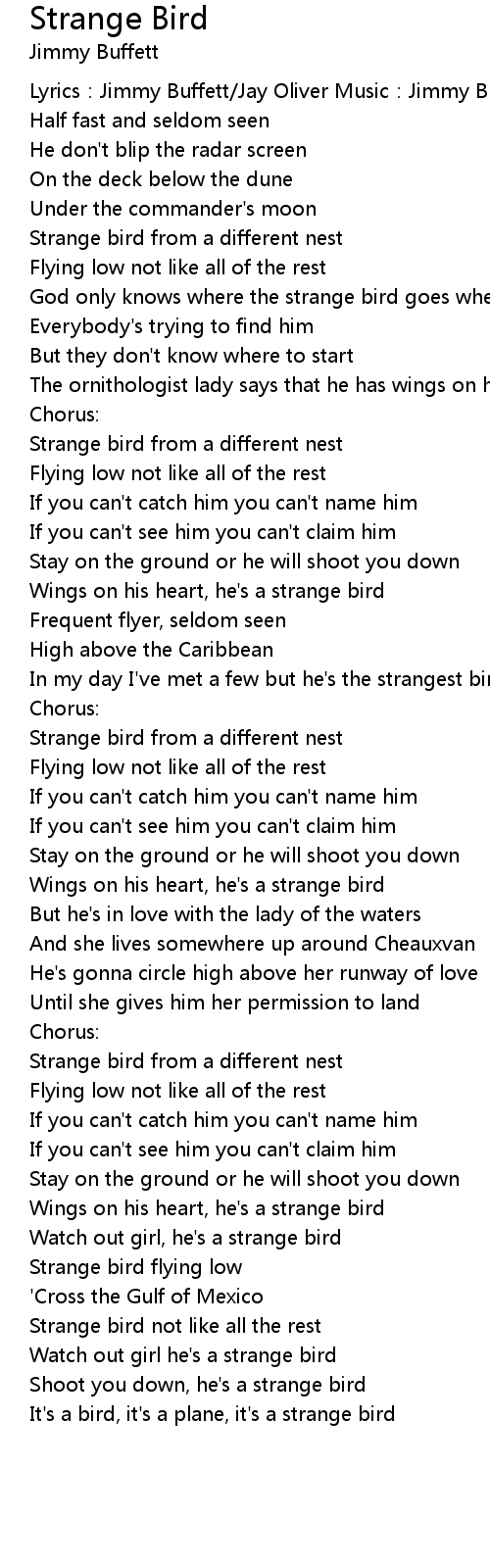 | God only knows where the strange bird goes when he' s flying | |